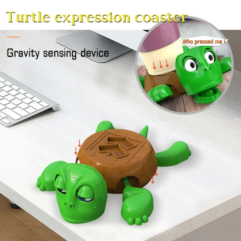 Motion-Activated Turtle Coaster with Extendable Legs - 17cm Multi-Functional Drink Mat & Phone Stand, Reactive Eye Expression Plastic Desktop Decor